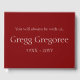 Denna minimalistiska begravnings- eller minneshandbok innehåller budskapet "Du kommer alltid att vara med oss" och det anpassade datan för namn och födelse/död för den person som har gått bort, i vit text på röd bakgrund. Den skulle kunna användas för att registrera förtjusta minnen av någon som nyligen har passerat vidare.