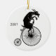 Svart get som rider en vintagecykel, original- silhouette. Att skräddarsy tillfoga din färg till bakgrunden.