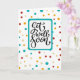 Get well soon card with a colorful dot pattern.