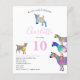 En samling färgglada, söta getter i levande rosa, lila, blå, orange, gul och akvamarin. En söt gårdsdjurs budget 10-års födelsedagsinbjudan med barngetter och getter som står på getter. Denna roliga festinbjudan är lätt att anpassa för att skapa en unik festinbjudan lämplig för barn och vuxna getälskare. Färgglada rosa tema psykedeliska get originalillustrationer av konstnären Catherine Sweetman