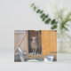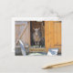 Detta vykort visar en mamma och ett barn get som välkomnar dig till deras hem.