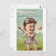Vintagen 1870-1880-talet poster, retuscherar och återställs av oss. (fläckar, repor, borttagna fläckar, kornig bakgrund, ursprungliga mjukade.) Beskrivning: Reklamkortet visar ett litet barn med baseball fladdermus som försöker slå en kastad baseboll.
