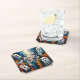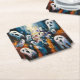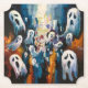 Bilden visar ett runt mönster med abstrakter som liknar spökliknande figurer i vitt med svarta och bruna accenter, vilket skapar en kaleidoskopisk effekt.