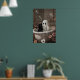 Ghost Brushing Black Cat's Teeth Bathtub Print Poster