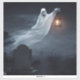 Ett eerie-spöke flyter över kyrkogården genom att tända ljus tittar för borttappadens själar. Underbar dekoration för Halloween. "generativeinnehåll"