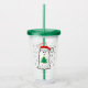 Cute spöke som håller en Julgran och bär en julhatt med snöflingor i bakgrunden