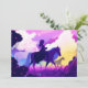 En digital illustration skildrar ett spöke dam vid solnedgången i en vacker dal. Hon rider på en spektralhäst och tittar direkt på tittaren med hennes luminösa öga. Det finns stora bildskärmar på bakgrunden. Måne är stigning och kvällstonar kryper från rosa-blått till blek gult. Flera gigantiska hästar springa efter henne i en fält-fullt av nära förestående natt
