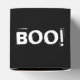 Ge är dina gäster en läskbehandling eller gåva i den här lådan. En svart låda med ett vitt spöke på framsidan och baksidan. Ord BOO! i vit text placeras på toppen för en extra-överraskning. Detta skulle innebära att perfekten läggs till party, händelser eller till och med temat Halloween bröllop.