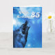 En spökvarg som hissar mot vintern måne. En ovanlig och unik utformning som visar måne i himlar med stiliserade stjärnor i fullt.