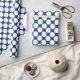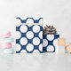 Omslagning papper i en contemporary av stora Ikat-prickar, med en subtil, strimmig mönster - vita prickar på en djup koboltblå bakgrund