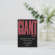 Ett stort och fetstilt teckensnitt proklamerar GIANT i denna typografibaserade design. Den här Storleka grafiklönen är till för människor som tycker om sak som är stora. Vissa kan ha större fysiska egenskaper än genomsnittet, en stor aptit eller ett stort lastbil. Giants höga röda brev står i strid med det lilla röda breven på ord-Storlek. Visa din önskan om allt och vad som helst enormt med den Storleka grafiken Giant!