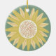 En vacker, handdragen, jättelik gult solros på ljust grönt bakgrund.