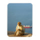 Barbary macaque längst upp på Gibraltars Sten, med Gibraltar Bay och sjöfart i bakgrunden