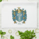 Heraldry-temat i aqua blue och guld har den engelska versionen av Gibson Family Crest. Denna Jacka av Arm skulle vara en unik familjepresentidé. Sköld visningar en blå bakgrund med tre storkar som visar vingar öppet. Guld krona vapensköld högst upp. I namn står det att Gibson står på vit handduk.