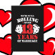 "Vi kör fortfarande efter 13 år av Giftermål" 13:e bröllop-årsjubiléet, citat med hjärtan och dice grafik.
