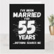 Det är en nutida femtiofemårsgåva från bröllop till par som har levt det gifta livet i 55 år och som har sett och hört allt och ingenting skrämmer dem. Perfekt för ett gift par som firar 55 år av giftermål med 55 bröllop-årsdagen av party! Den här noveltyns jubileumsgåva kommer att få många skratt från era make eller fru eller gäster från party. "Jag har varit gift i 55 år Inget Skrämmer mig", lustigt minnesmärke i giftermål.