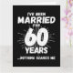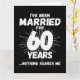 Det är en ynklig 60-årsgåva från bröllop till par som har levt det gifta livet i 60 år och som har sett och hört allt och ingenting skrämmer dem. Perfekt för ett gift par som firar 60 år av giftermål med 60 bröllop-årsdagen av party! Den här noveltyns jubileumsgåva kommer att få många skratt från era make eller fru eller gäster från party. "Jag har varit gift i 60 år Inget Skrämmer mig", lustigt minnesmärke i giftermål.