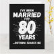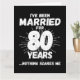 Det är en nutida 80-årsgåva från bröllop till par som har levt det gifta livet i 80 år och som har sett och hört allt och ingenting skrämmer dem. Perfekt för ett gift par som firar 80 år av giftermål med 80 bröllop-årsdagen av party! Den här noveltyns jubileumsgåva kommer att få många skratt från era make eller fru eller gäster från party. "Jag har varit gift i 80 år Inget Skrämmer mig", lustigt minnesmärke i giftermål.