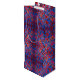 En presentsäck av vin-storlek i snyggt med ett vibrerande blått och rött geometriskt mönster.