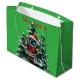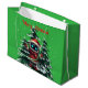 Wrap your gifts in festive fun with this bright and playful gift bag featuring a cute Santa-hat-wearing robot and a merry holiday quote. The charming design adds a modern and whimsical twist to Christmas gifting, making every present look extra special under the tree.