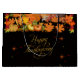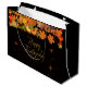 Beautiful elegant black gift bag with warm autumn motifs – leaves, pumpkins, and golden hues, for special gift.