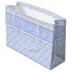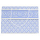 Originaldamm är i själva verket en typ av tyg som användor olika vävningstekniker och olika trådar för att skapa alternerande höljen, vilket resulterar i en ton-på-ton-design. I den ursprungliga dammen vävdes mönster faktiskt in i vävnaden, vilket skapar vävnaden reversibel. En modernare anpassning skulle vara de vävnader som skapades på Jacquard-vävnaderna. Dessa maskintrade dammar var billigare och lyckades föra denna billigare damm till mitten-klassen. Den här utformningen är en hyllning till den tusenåriga konsten av väv. Den vita blomningen är en skarp kontrast till den veckovisa blå bakgrunden. Denna vackra helhetsutformning är vackert förankrad med en något dimensionerad blomstrande krona i gräns. Det är ett utmärkt val för bröllop, årsdagar, babyduschar. . - Nästan vilken elegant som helst tillfälle.
