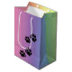 Regnbåge färg skapar vägens bakgrund. Färg ska figursättas vågrätt runt påsen. Fyra tassavtryck (7 ton vardera) placeras både fram och bak.