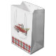 Giftsäck med vatten-design av Himmel Paperie under natten, med ett rött lastbil med träd och presentlådor i baksidan