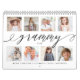 Skicka en vacker personlig till din Grammy som hon ska ta hand om. Speciella personligens barnbarn och familjens fotosamlingskalender för att visning dina egna speciella familjefotografier och -minnen. Utformningen av täcket på framsidan har en enkel 8-fotostödraster med "Grammy"-designad i ett vackert handskrivet svart skript stil. Varje foto ramas med en enkel ram i guld-färgaden. Anpassa med barnbarns och familjemedlemmars namn. Varje månad visas en bild som är storlek i fullt, där månadens svarta kalligrafi i elegant visas något över varje foto.