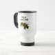 Den här resemuggen i anpassningsbarna för turner av trä har en tecknad av en lera med hand, gouge och loggarväng, med träspån avbrutna. Det står att det är så jag rullar.