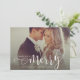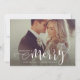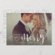 Denna moderna helgdagjulkort är perfekt för nyligen gift par. Den presenterar nyckfull vit skrivar typografi på den ljusa bekläda och elegant - grå färg och vit virvlar runt mönster på baksidaen.