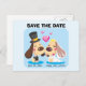 Sött gift hundpar som ler av kärlek på sin bröllopsdag, klädda för tillfället. Fira din bröllopsdag med denna underbara Kakigori Studio-design.