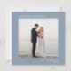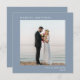 Elegant dammig blå fyrkantig julkort för nygifta med en minimalistisk design som innehåller ditt foto, "Gift Jul", ditt namn och året i modern vit serif-typografi.