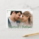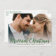 Det här fantastiska första julfotot med bröllop-annonskort med "gift jul!" i ett modernt guld-skript och ditt namn och bröllop-datum med ett rent, tydligt, traditionellt hylsteckensnitt på framsidan och ett helt anpassade bröllop-meddelande och helgdag på baksidan i en passande guld med vitt traditionellt teckensnitt är perfekt att skicka till alla dina familjer och vänner. Alla kommer att få ett foto på dig på din stora dag! Om du vill göra det här kortet till ett eget kort väljer du Anpassa den här mallen, överför ett favoritfoto från bröllop och skriver in det i namn, bröllop datum/plats och helgdag. Det är så enkelt!