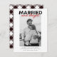 Julkort för det nylånade paret i en röd och svart typografi "Gift och ljus"-design. Anpassad med ditt foto, hälsning och namn. Baksidan av det här fotojulkortet är att samordna den svarta och vita plattformen.