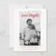 Julkort för det nylånade paret i en röd och grått-typografi "Gift och ljus"-design. Anpassad med ditt foto, hälsning och namn. Baksidan av det här fotojulkortet är att samordna grått-julsnowflake och renplätering.