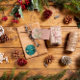 Helgdag av tillfällig personlig med chic som dekoreras med guldåterutgivare på den vita glasbakgrunden.