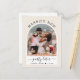 Modern krämvit vigsel- eller mindre bröllopsinbjudan-kort för att informera familj och vänner om att era bröllopsplaner har ändrats, vilket kräver att ni gifter er i all tysthet eller minskar antalet gäster på er bröllopsfest till en liten intim grupp, men att ni kommer att hålla en festlig tillställning i framtiden. Framsidan visar ert foto i en välvd ram och "Gift oss nu, fest senare" i en blandning av enkel typografi och trendig handskrift. Under ert foto kan ni lägga till era förnamn och bröllopsdatum. På baksidan kan ni anpassa ert meddelande i detalj och era namn i en signaturliknande handskrift.