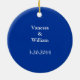 Denna trendig yet den eleganta julprydnaden gör en underbar minnessak för nyligen en gifta sig att koppla ihop. Den presenterar ord "att gifta sig och glatt" på en fast färgbakgrund och lilla snöflingor för en gräns eller. Namnen och året kan tillfogas på baken. Tillfoga en bild av lycklig kopplar ihop och gör det en underbar helgdaggåva!