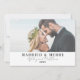Fira din första jul som nygifta genom att dela din glädje med nära och kära med detta enkla och minimalistiska julkort. Utformningen har frasen "Married & Merry" på framsidan och inkluderar era namn och bröllopsår, vilket gör det till ett perfekt sätt att fira detta speciella år. Kortet visar två av era favoritfoton - oavsett om de är från er bröllopsdag eller andra kärleksfulla ögonblick ni delat - med en subtil vit transparens för en eterisk effekt. Du kan enkelt ta bort transparensen i redigeraren om du föredrar en ljusare look. Detta kort är ett vackert sätt att önska varma julhälsningar samtidigt som ni firar er kärlek. Nygift Julkort Enkelt Elegant Foto.