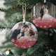 Elegantens fotodekoration för nylweds har ett bröllop-favoritfoto på vardera sidan. "Married & bright" visas i ett vitt kalligrafiskt skript som läggs till med snöflingor på en röd tranbär. Anpassa med datum eller år för namn och bröllop på motsatt sida. En vacker keepy för din första gifta jul.
