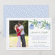 ** Foto kredit: Fotografi © Storytree Studios, Stanford, CA ** / Chic helgdag fotokortdesign med en fir träd gren dekorerad med blå och vit chinoiserie mönster baubles, där mitten är att visning parets initialer. På baksidan finns en blå och vit grekisk Nyckel mönster. Om du vill kan du också lägga till ett eget vågrät-foto i stället.