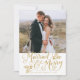 Gift och Merry Photo Tack Guld Julkort