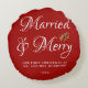 Vår första julen Gift röd Kastkudde med "Gift och glad"-manus kan enkelt anpassas med den nya herr- och fru-släktnamnet och året. Lätt att anpassa. Skaffa din idag!