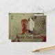 rustika vintage västerländska landsbygdens cowboy bröllopsinbjudningar, cowboystövlar bröllopsinbjudningar, cowboystövlar bröllopsfavoriter, precis gift bröllopsinbjudningar, cowboy bröllop spara datum vykort
