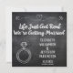 Livet har precis börjat - Vi gifter oss modern och enkel tavla i kritskrift för bröllop, kort för att spara datum. Perfekt "spara datum"-kort att skicka med post till din familj och vänner. Design på framsida och baksida. Lägg till ett personligt meddelande på baksidan.