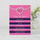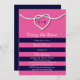 Ett vitt sjungande rep som är bundet i ett hjärta dekorerar denna ljusa rosa och marinen inbjudningskort för möhippan, skapar perfekten för den nautistiska temdruschen. Rullan ner för att se resten av insamlingen i bröllop, och om det behövs ytterligare uppgifter kan du kontakta oss på prettyfancyinvites@gmail.com med din begäran