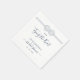 I den moderna snyggtens napkins finns en rep överst med den lämpliga nautiska frasen "Gifter sig" i ett handskriftsskript för trendig, i ett klassiskt vit och marint blått färg.