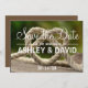 Ett modernt Spara datumkortet med en bakgrundsbild av en kopplingsknapp för en rustik vridning. Anpassa kortet med olika typsnitt, storlekt teckensnitt och färg för namn och datum. På kortets baksida kan du ange ytterligare information (t.ex. bröllop webbplats) eller ta bort området och lämna tomt. Du kan också ändra kortets storleka, utseende och pappra för att uppfylla dina behov.