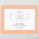 "Persika & vit" bröllopsannonsdesign med persikofärgad kant som inkluderar en elegant vit kant. "Herr & fru" visas i stilfull kalligrafi med två sammanflätade hjärtan som håller förnamnen på paret, arrangerade på en krispigt vit bakgrund. Kalligrafi och typsnitt är kolgrå på vit bakgrund. Anpassa med ditt namn och bröllopsdatum. En modern mall för datum och år kompletterar den unika kalligrafidesignen. Baksidan av papperet ger en mall för ditt meddelande och utrymme för dina handskrivna signaturer för att lägga till den personliga känslan.